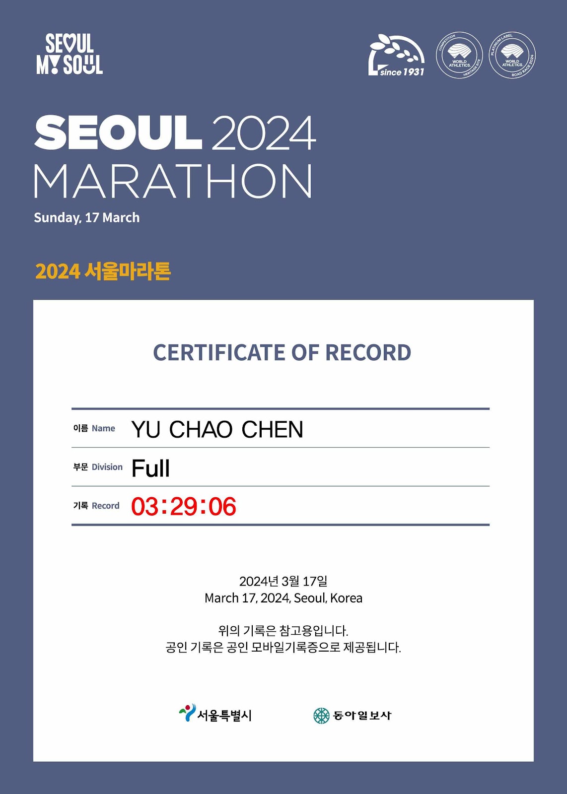 最後大會給出的成績就是3:29
